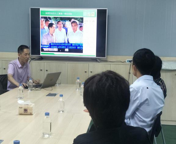 公司領(lǐng)導(dǎo)匯報(bào)水庫液位智能監(jiān)測系統(tǒng)和分散一體化污水設(shè)備及中風(fēng)光發(fā)電的運(yùn)用